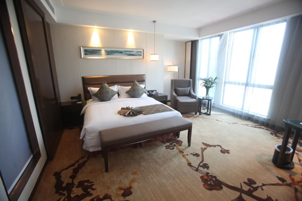 酒店拥有83间豪华客房,单间面积约为30--40平方米,每间客房都装有宽敞明亮的落地窗,通风透气好,采光性能佳。房间内设施齐全,设备智能,采用了目前比较前卫的蓝牙数据交换系统、音乐播放系统、温度调节系统、窗帘自动开启系统以及SOS系统,竭力为宾客提供高品质的智能化服务。酒店顶层的景观花园,景色怡人,意境唯美,给宾客带来回归大自然的感觉。