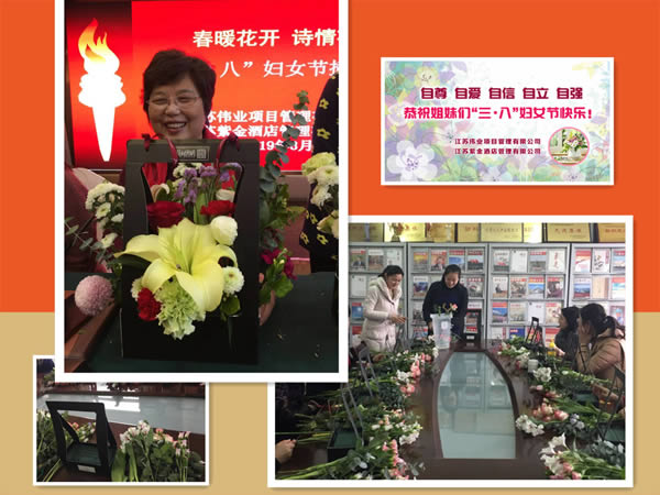 欢声笑语,花香四溢。3月7日上午,江苏伟业项目管理有限公司与江苏紫金酒店管理有限公司在盐城紫金•华都酒店,联合举办了以“春暖花开、诗情花艺”为主题的庆祝“三八”妇女节插花培训活动。两公司部分女员工代表参加了此次活动。公司董事长薛青亲临活动现场向女员工们祝福节日并与女员工们开展插花互动。 |